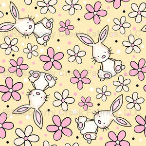 Bunnies and Daisy Flowers Soft Yellow