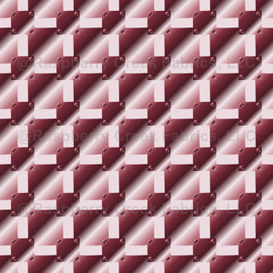 Burgundy on cream riveted square metal plates in a gradient Industrial texture with metallic shine effect, for steampunk, modern décor, costumes, cosplay, quilting, unique fabric accents and projects.