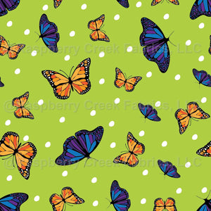 (m) Tossed Butterfly Daisy Floral -Green &Orange - Pastel Baby Nursery