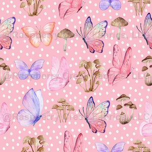 Butterflies & Mushrooms on Bubblegum Pink - small
