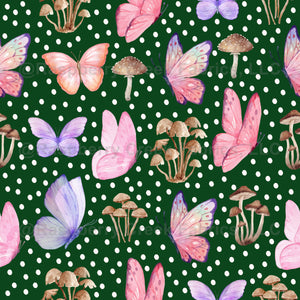 Butterflies & Mushrooms on Dark Green - large