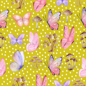 Butterflies & Mushrooms on Dark Yellow - large
