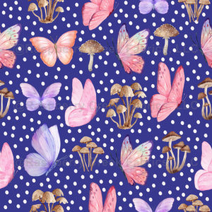 Butterflies & Mushrooms on Royal Blue - large