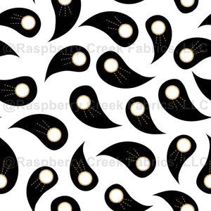Minimalist black and white paisley with golden lining, part of black and white collection
