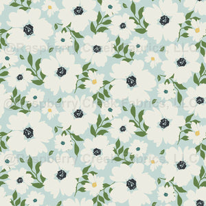 Calming Serene White Flowers Lush Garden Light Pastel Blue