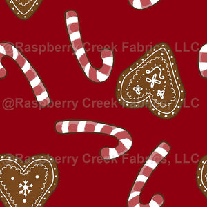 Wrapped in a cozy Christmas red, this enchanting fabric tells a story of winter magic and sweet delights. Twirling candy canes dance among gingerbread hearts, each one lovingly decorated with icing swirls and tiny sugar stars. The pattern feels like a whisper from a snowy December night — warm kitchens glowing with candlelight, laughter, and the scent of cinnamon in the air.