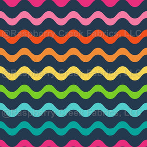 Candy Rainbow Wavy Stripes on Navy Birthday Party Time Coordinate