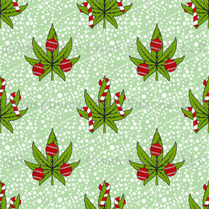 Cannabis Christmas Marijuana Leaves Candy Canes and Ornaments Green