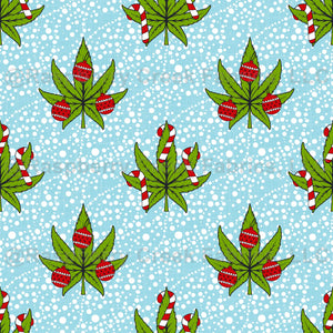 Cannabis Christmas Marijuana Leaves Candy Canes Ornaments Blue