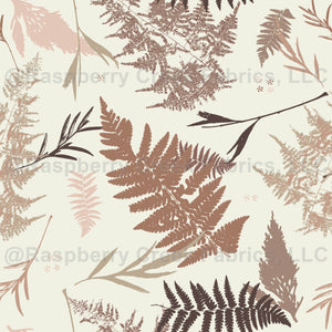Fern leaves in Cannoli Cream , mocha mousse, Cream Tan, Safari, Sirocco, Chanterelle, Baltic Amber and Chocolate Martini. Ideal for wallpaper, home decor, living room, etc.