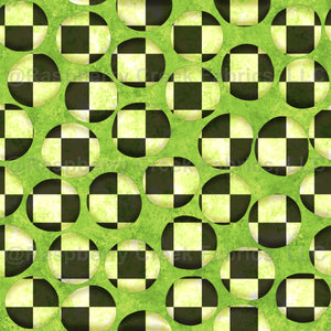 A medium lime green, black, polka dots, and checkered coordinate for the collection, The Witch's Wardrobe.