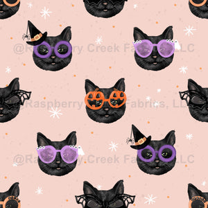 Cats, black cats, cute, kitty, kids, girls, black, whimsical, hey boo, beige, sunglasses, halloween, watercolor, light purple, witch hat, pumpkin, pumpkin sunglasses, women, fall