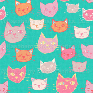 Cute hand drawn cats kittens kittys , smiling cats on turquoise ground