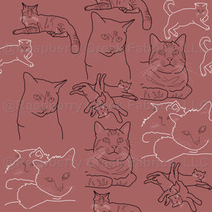 Contemporary line art sketches of cats in black and white create an interesting collage on Desert Rose.