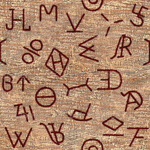 Scattered Ranch Brands on a seamless wood texture.