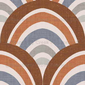 Chalk Rainbow Scallops - Playful Doodle - Brown Grey Blue