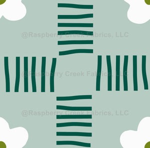 Geometric tile-inspired design with floral elements in green and teal tones, ideal for retro-inspired interiors or apparel.
