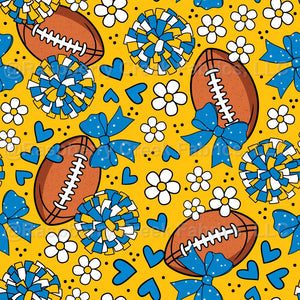 Cheer Bows and Footballs in Blue and Yellow