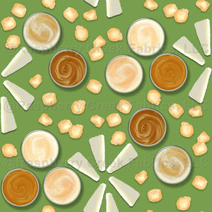 Hard cheese wedges, soft nuggets, and swirly cheese dips create a fun snack-themed design on a crisp snap pea green.
