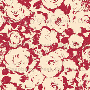 This cherry pink papercut rose floral creates a beautiful design on peachy cream fabric.