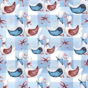 Watercolor Hand Drawn Illustration of Chic Country Geese. Soft Blue Stripes. Rustic Plaid, Check, Gingham