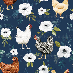 Chicken Floral on Navy Blue Avaleigh