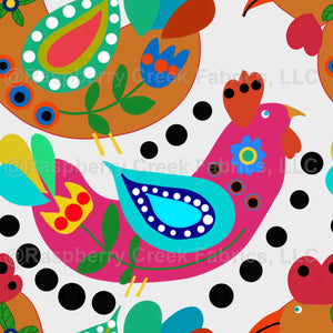 Chicken Folk, Fiesta Cluckers, Colorful Birds Pattern, White Background
