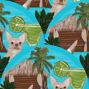 A cute, fun and tropical art deco scallops pattern using our Chihuahuas Cabanas and Cocktails design in browns and greens.