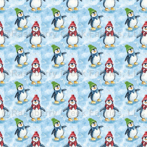 Christmas Penguins Ice Skate In Hats And Scarves
