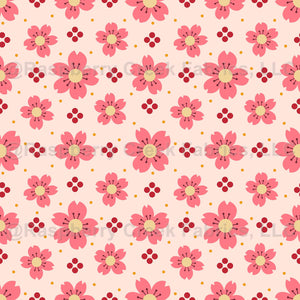 A pattern design featuring Chinese New Year cherry blossoms on a pink background.