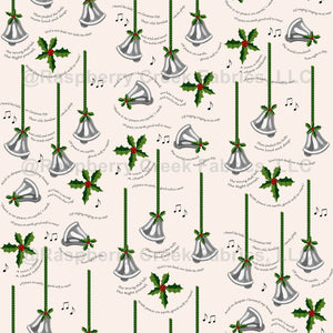 Inspired by the words to an old Christmas carol about peace on earth, this design incorporates silver bells on green ropes, sprigs of holly, and the words to the carol arranged in a way that makes it seem like the bells really are ringing. The background on this design is winter cream.