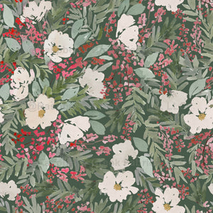 Christmas Berries and Pine Watercolor Floral in White, Red, and Green