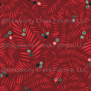 Sweet, small berries with imergreen branches. Traditional Christmas pattern in classic colors.
