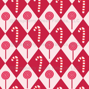 This is cute Christmas candy sticks and peppermints on red diamonds