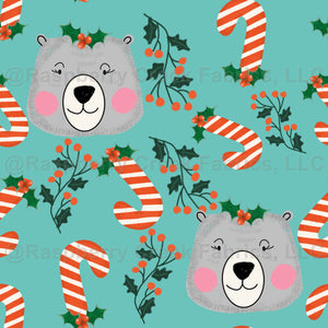 Christmas Cute Miss Bear and Candy Can Light Blue
