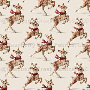 Christmas Collection: Deer Romp In The Snow With Red Scarves In Tan, Beige And Brown Hues