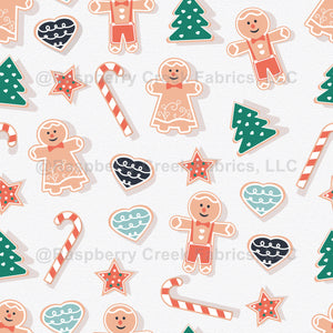 Christmas design, with glazed biscuits and gingerbread man with textured white background