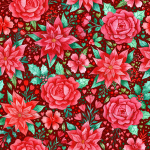 Christmas Florals with Poinsettias and Roses in Watercolor on Burgundy (Magic of Christmas Collection)