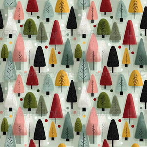 Christmas Forest Modern Green, Pink, Yellow, Iced Blue And Red Color Palette With Dots