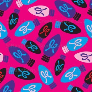 A non-traditional Christmas winter holiday design with pink, blue, black, purple and red Christmas lights decorations on fuchsia! Festive and FUN! Pair this one with my coordinating "Snowflakes" designs in matching colours on Pink or Black!