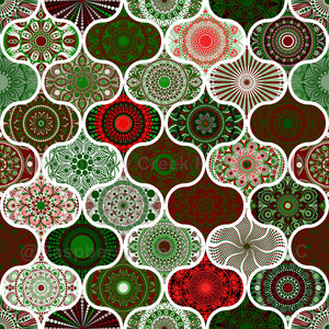 Have a boho holiday season with our festive red and green dot mandalas in an ogee patchwork cheater quilt design.