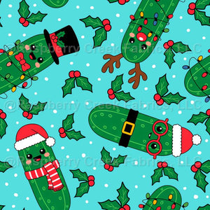 Christmas Pickles Santa Claus Reindeer Snowman Elf in Blue