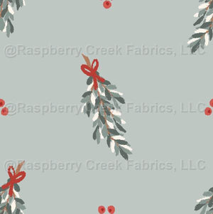 Christmas Pine Garland Swag with Red Ribbon and Winter Berries on Pale Sage // Festive Flora