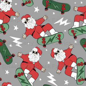 Christmas Santa Skater Skateboard On Grey