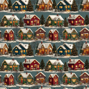 Christmas Winter Holiday Cottages In Red, Green, Yellow, White, And Blue During Snowfall