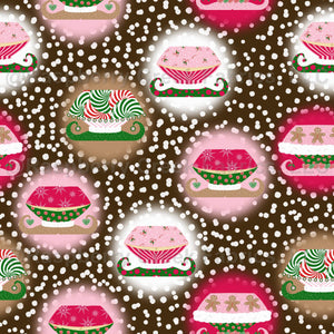 Chubby Elves pink and red Christmas print. Great for any sewing or quilting project. Elf motifs are approximately 3.5"