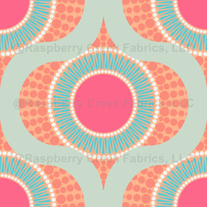 Retro vibes in our abstract floral circball-inspired dot mandala in a mid century modern ogee pattern using colours from our Sunset on Sea palette.