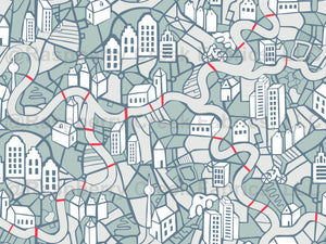 City life map blue teal, Minimalistic city map in Scandinavian style, looks like cut-outs. Soft, genderneutral colors. Hero pattern of my City Life collection.