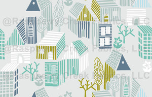 City life neighborhood soft grey, Cozy small town life. Minimalist houses in Scandinavian style, looks like cut-outs. Part of the City Life collection.