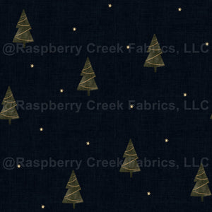 Classic navy background with Christmas trees and golden stars. Ideal for holiday themed home decor and accessories.